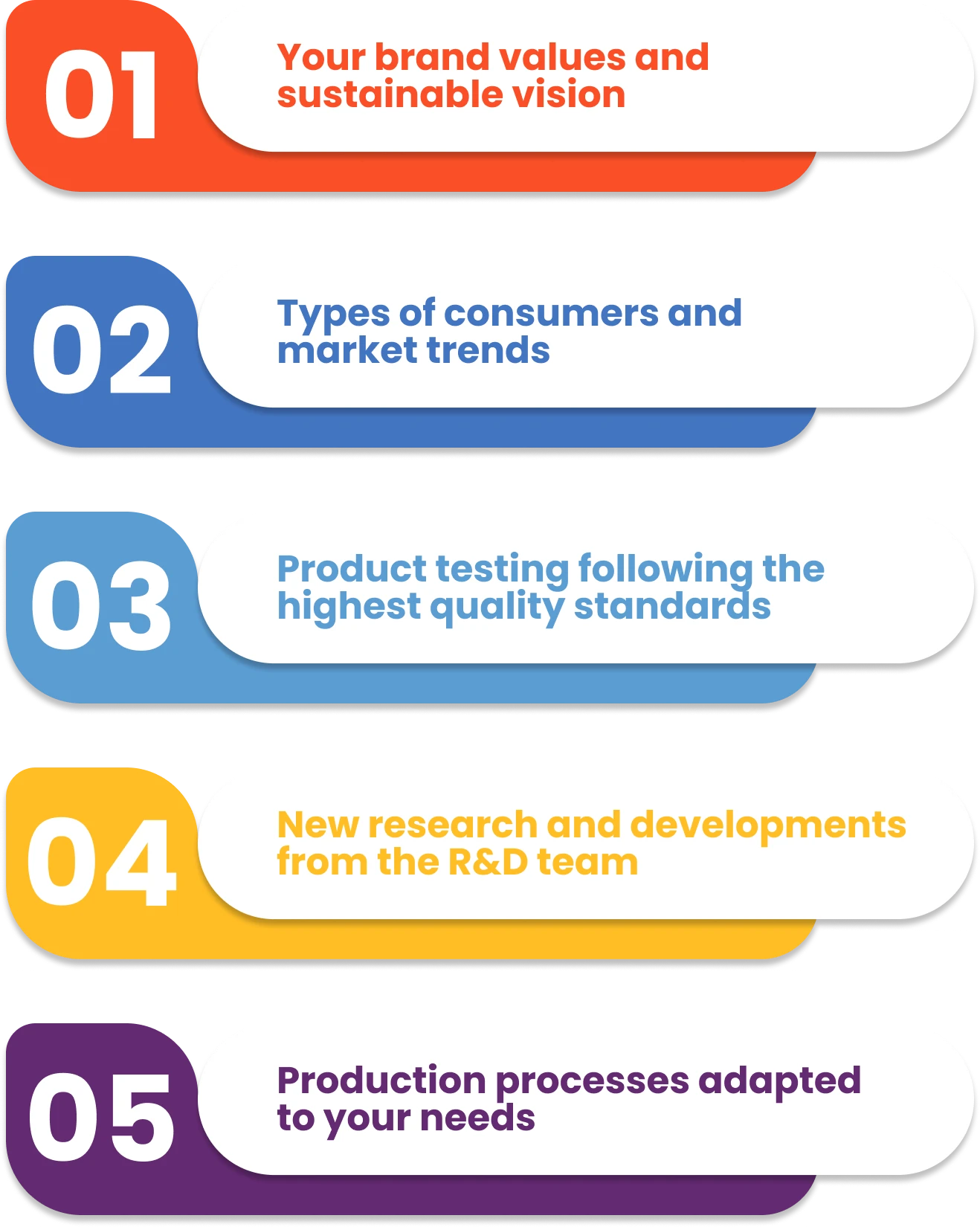 With years of experience in food manufacturing, we have consolidated the best practices to collaborate with you and take your product from concept to large-scale production.